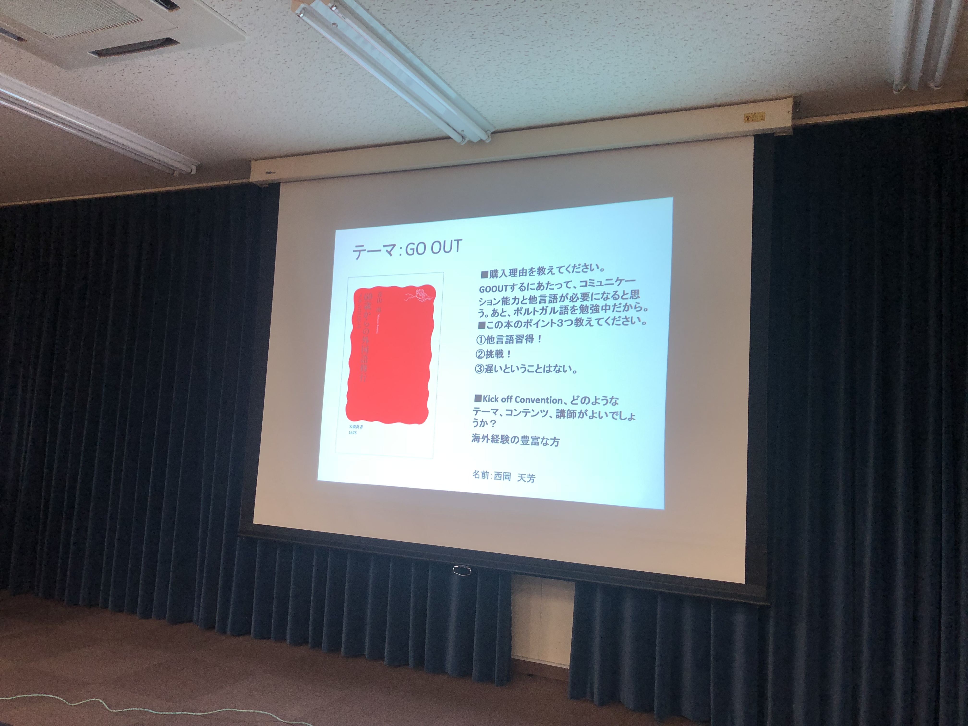 ⑤前回定例会で宿題になっていたgo outのテーマで書籍を探し読みそして感想を発表する、を全議員でおこないました
