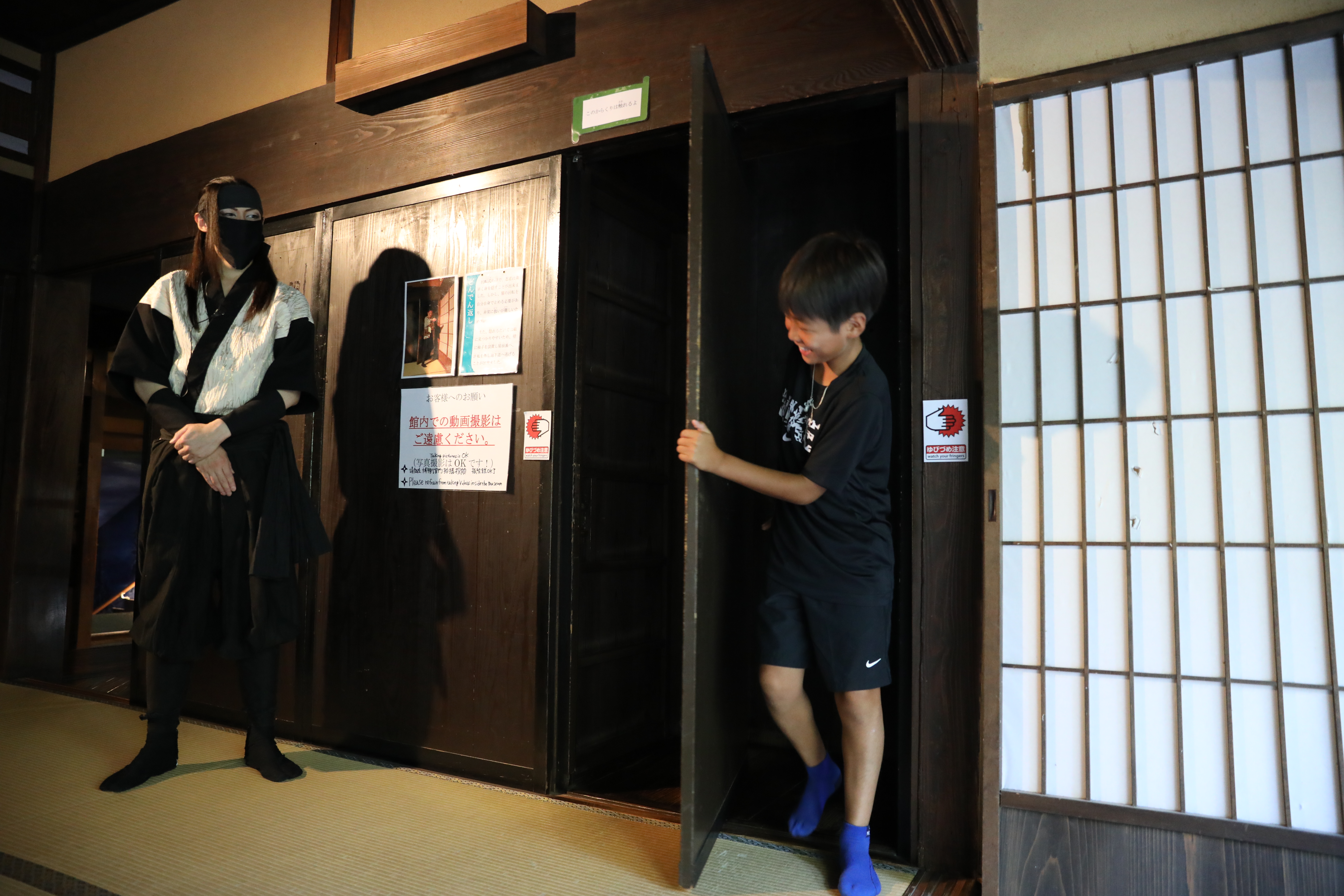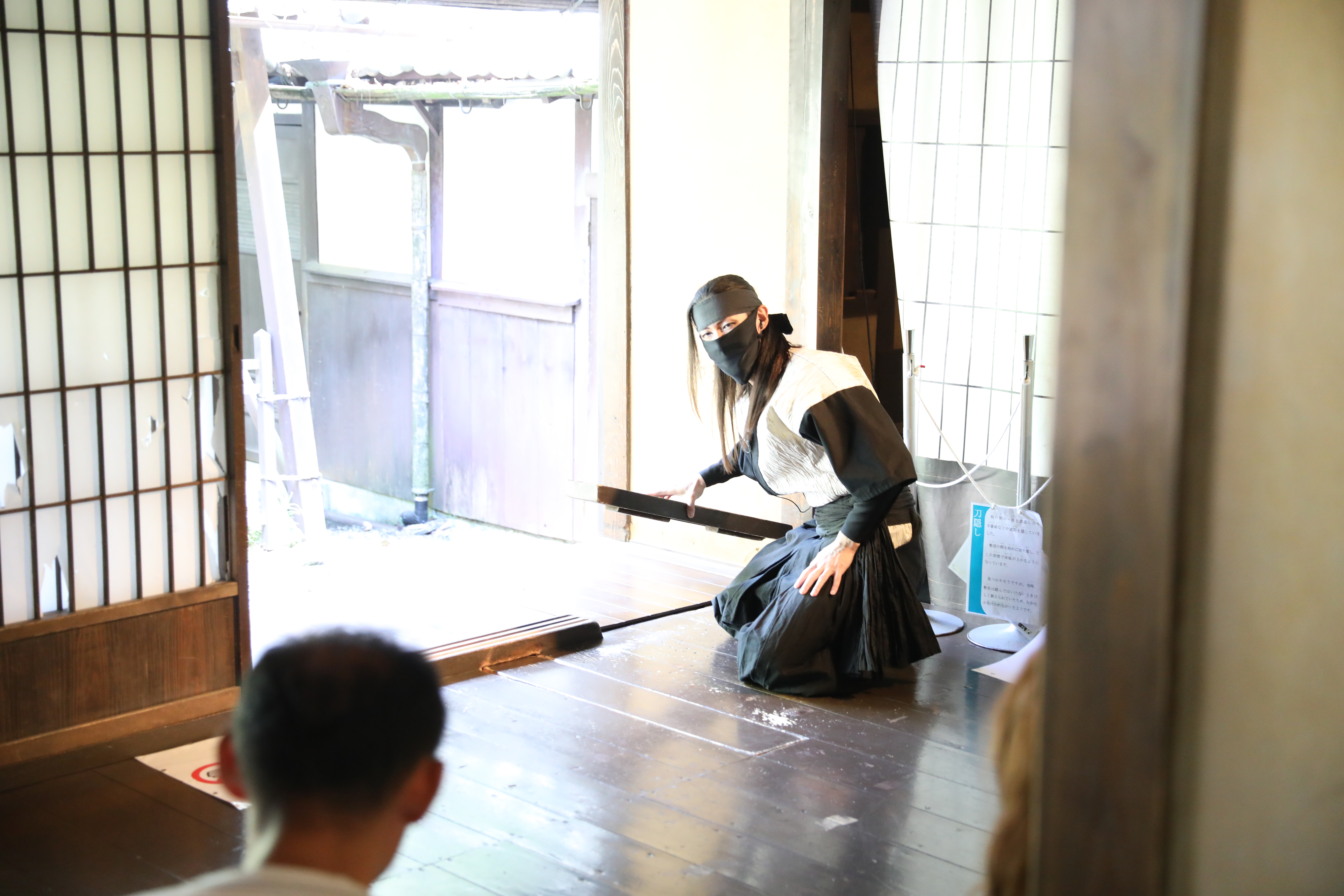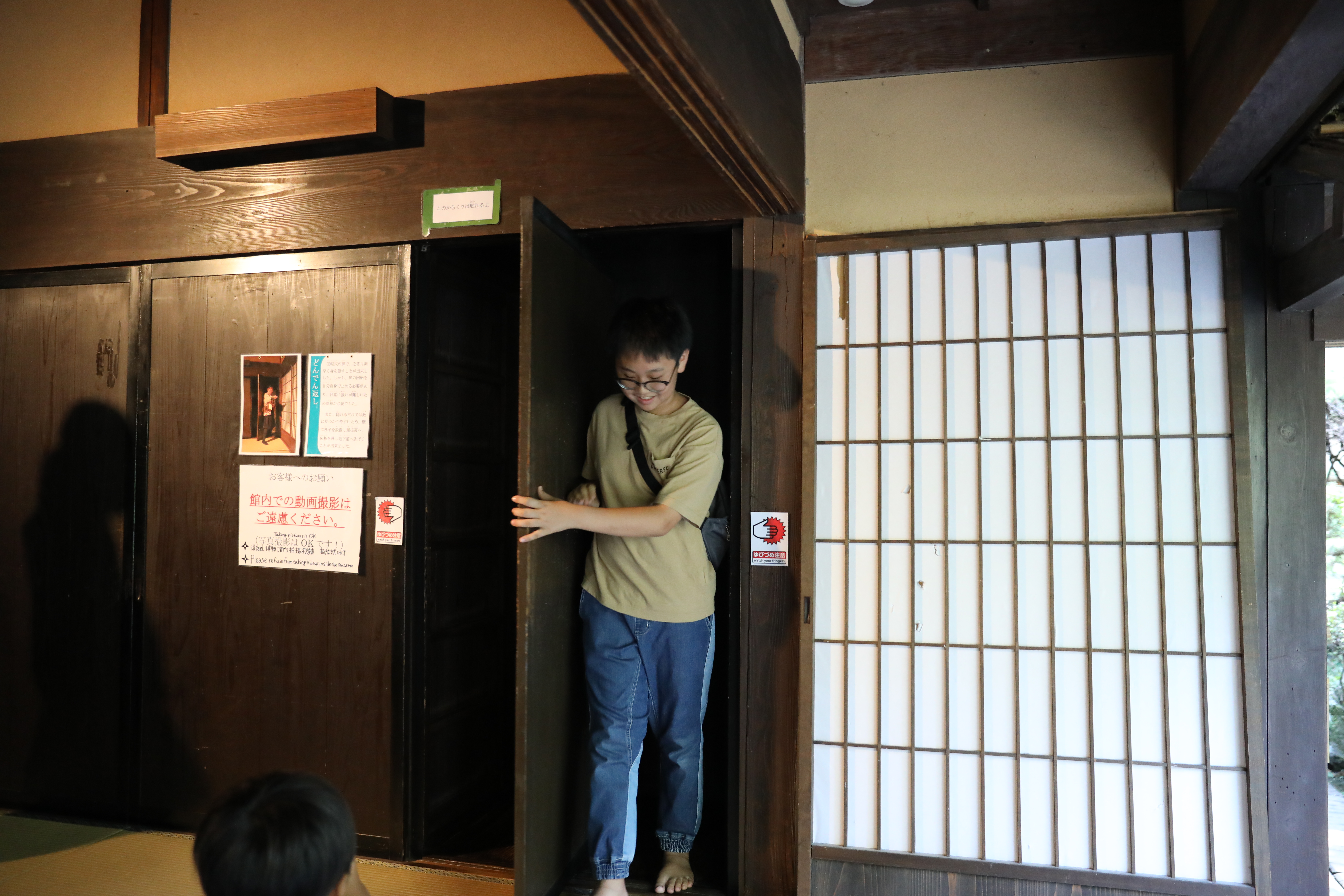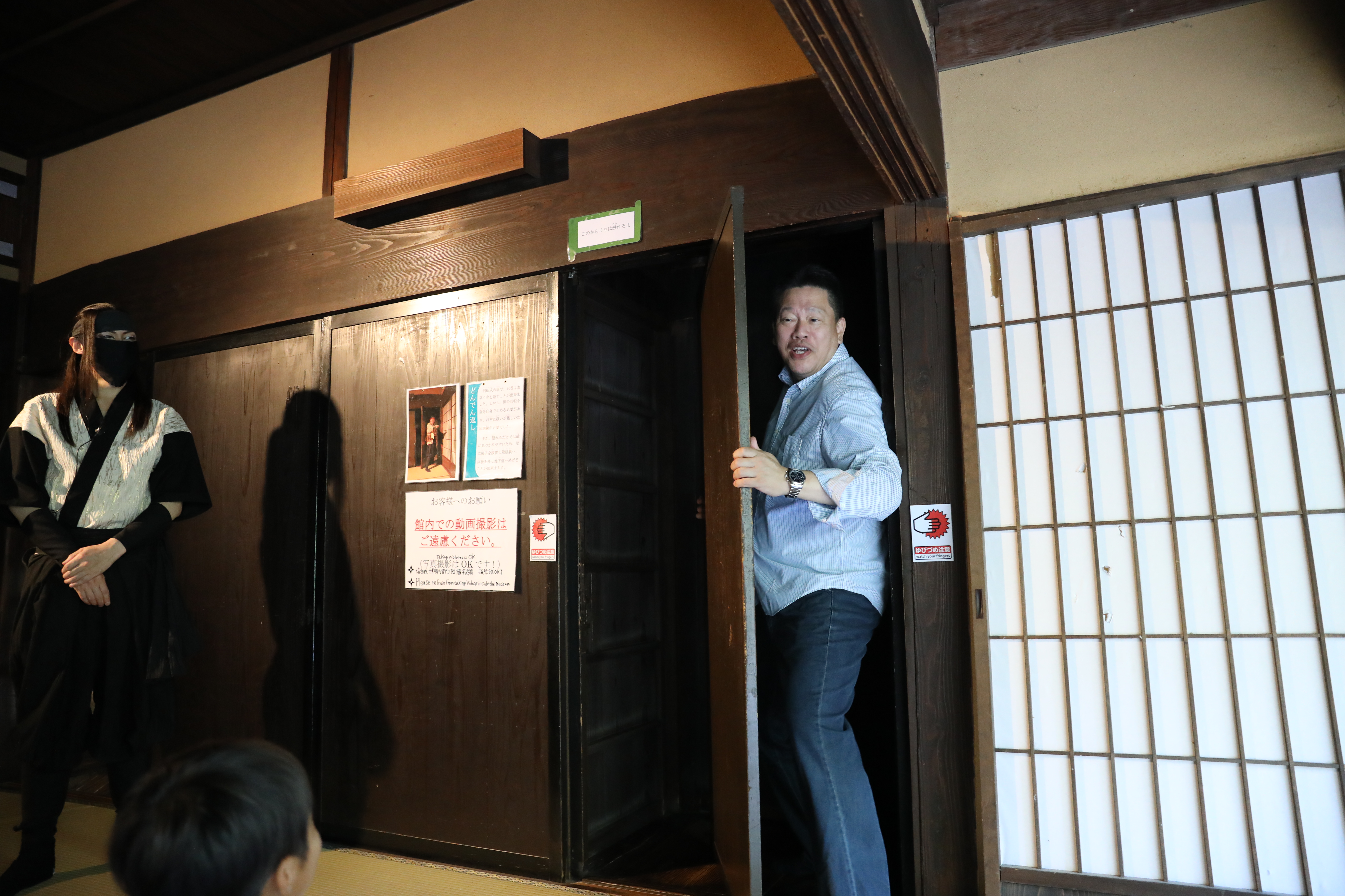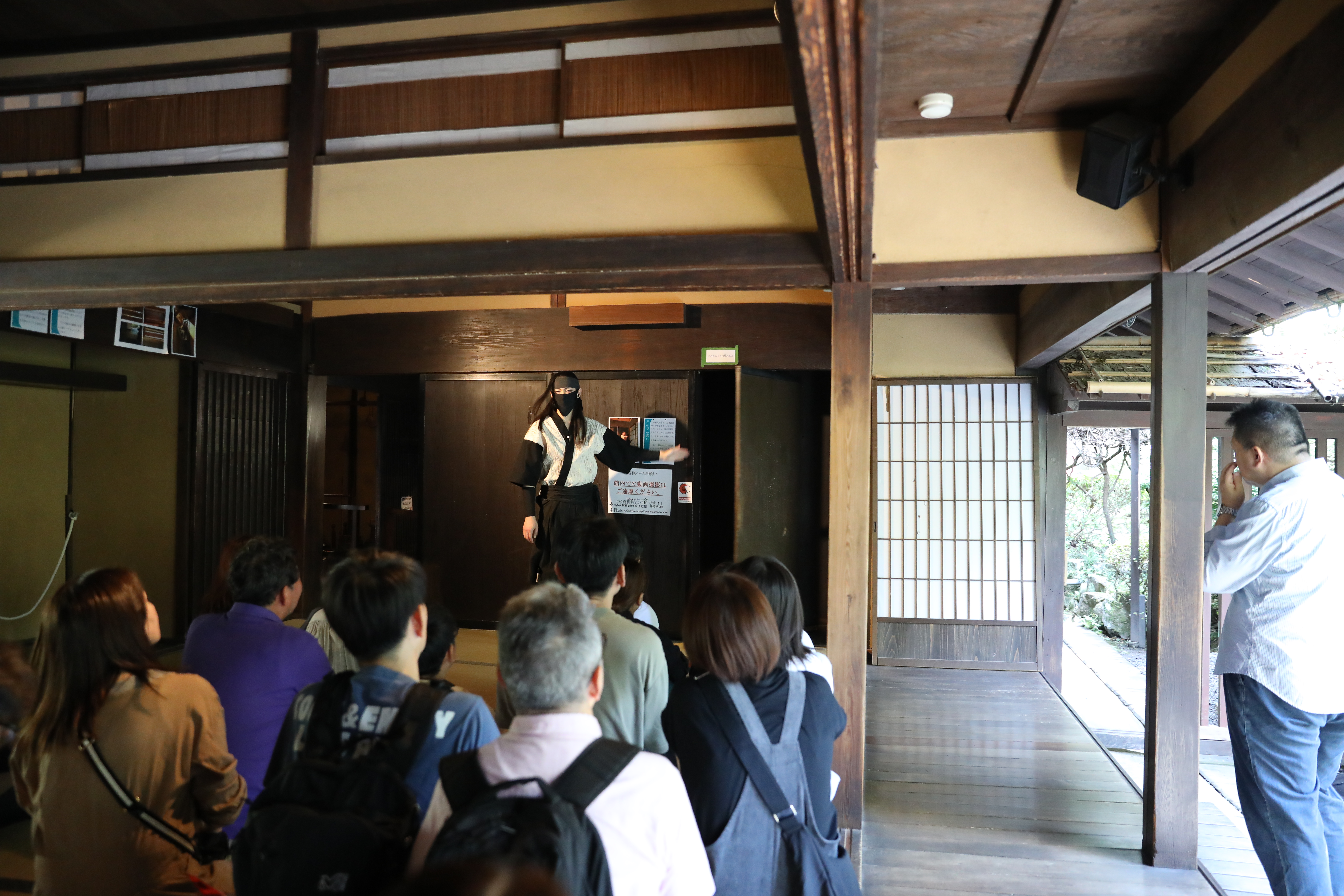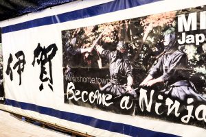天王寺公園バス乗り場AM8時集合 定刻出発、今回担当支部、八尾南支部 石川支部長より 参加していただいた方にお礼、盛りだくさんの企画なので皆さん楽しんで下さいと挨拶されました、次に今回お世話になる旅行会社さん挨拶、バスは高速乗り伊賀方面走行、途中クイズ大会が始まり、1部はロゴマーク正解どれだ?日頃見慣れているマーク(ロゴ)は4問のうち正解は一つ当てるクイズでしたが中々難しく全問正解は4人でした、2部は子供向けクイズ全問正解で終わり、大人向けクイズ進み9時半ころには駐車場に到着、一行は伊賀流忍者博物館へ 屋敷内を忍者?が仕掛けについて実践で説明してくれました、手裏剣、武器など展示物を見学、その後 忍者実演ショー見物 手裏剣使った実演、戦いの模様、武器の紹介、参加者がステージに呼ばれ、矢を投げて的から外れるのを見て大爆笑しました、迫力あるステージ見学して良かったです。