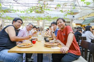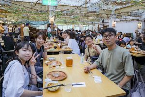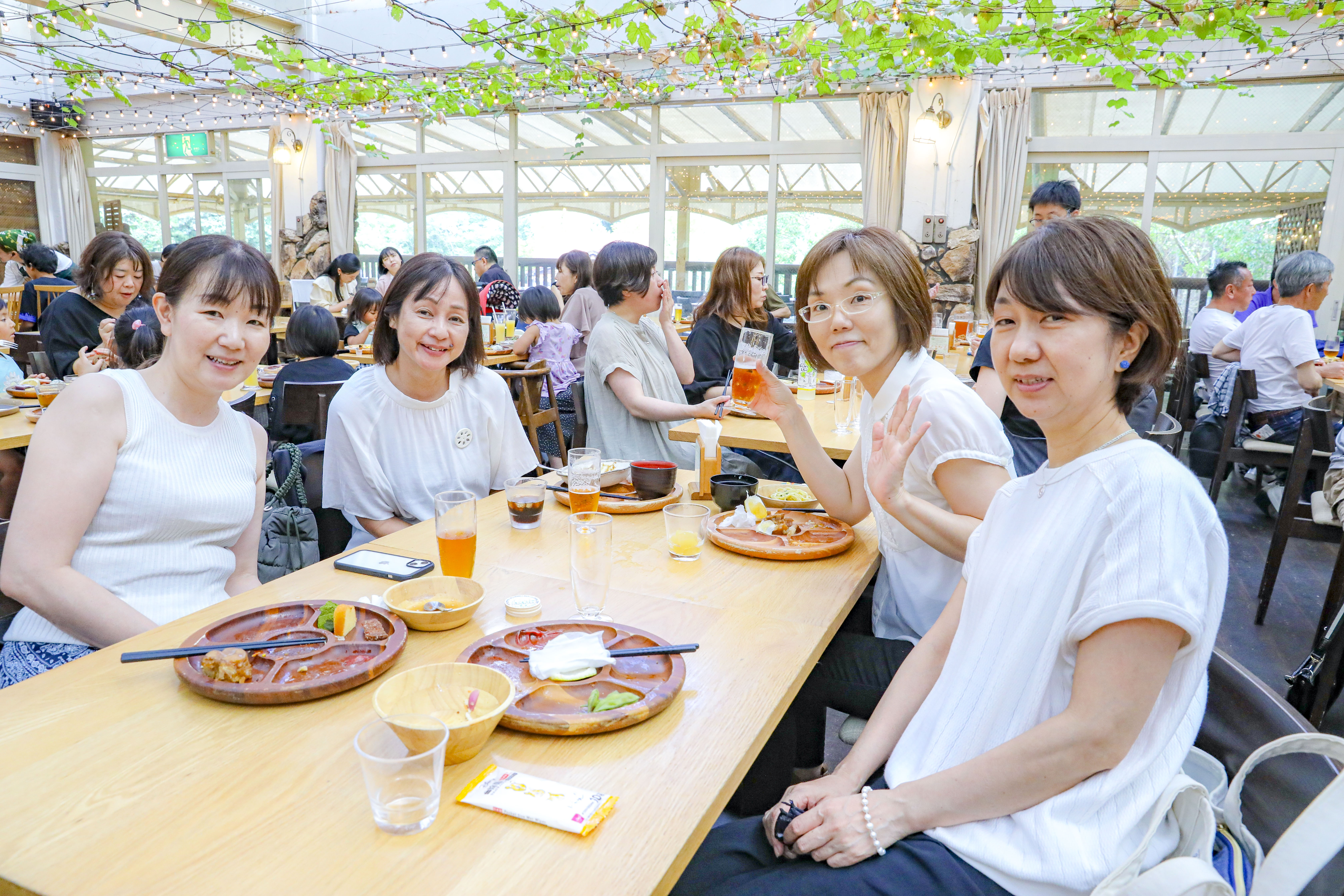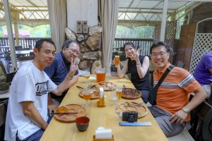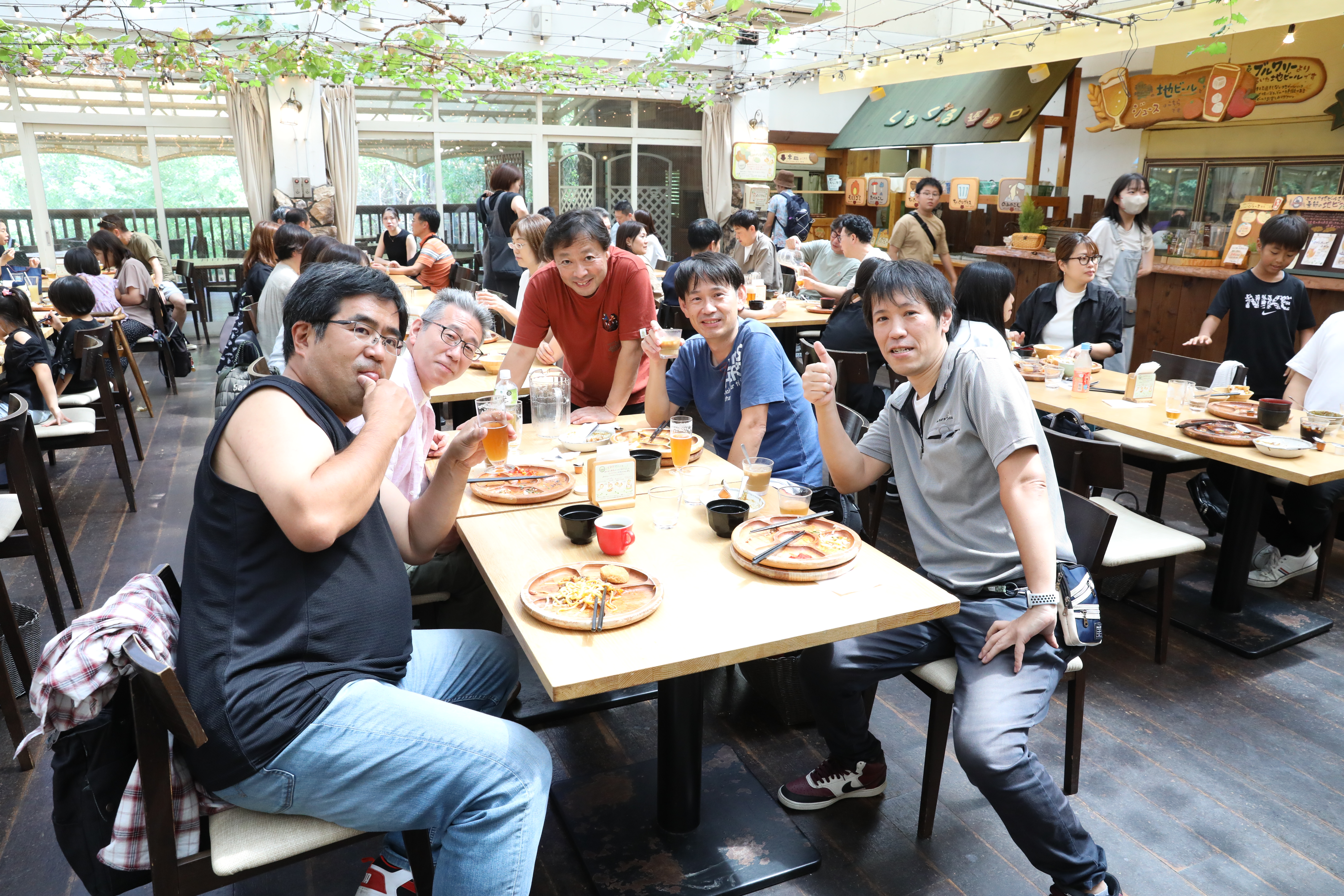 その後モクモク手作りファーム到着 11時過ぎにビュッフェ食べ放題のレストラン到着、人気あるレストランなので満員でした、ここで作られたウインナー、ピザ他食べました、ビール飲んでる方もいて 美味しい! 美味しい!と言いながら皆さん大満足でした。