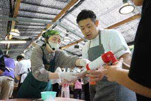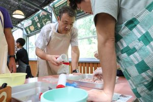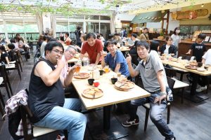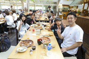子豚のショー、足湯、土産屋、美味しいと評判のジェラートなど集合時間まで楽しみバスに乗り込みました。乗ってきたバスがクーラー故障がありバス乗換などハプニングがありましたが、最後の目的地 土産屋大小屋さんへ 土産、たぬきの置物、陶器等あり ゆっくり買い物しました、せっかくなので信楽駅前にある特大のたぬきを車窓から見物その後、大阪へ帰路となりました、途中 本部のBBQ、次回屋形船PRしていただき最後に石川支部長の挨拶 皆様楽しみましたか?の掛け声に 良かった! 満足やった!と多数の声いただきました、旅行会社様より挨拶で締 18時過ぎには無事に大阪着、皆さん楽しそうに帰宅しました。家に帰りウインナー早速食べました、自分で作ったウインナーは特別に美味いと感じました、皆さんどうもお疲れさまでした。